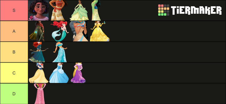 Tiara On Twitter Seriestangled Tiermaker Here Is My The Disney Princess Tier List I Based My List Solely On Character Personality And Tried Not To Be Biased Based On