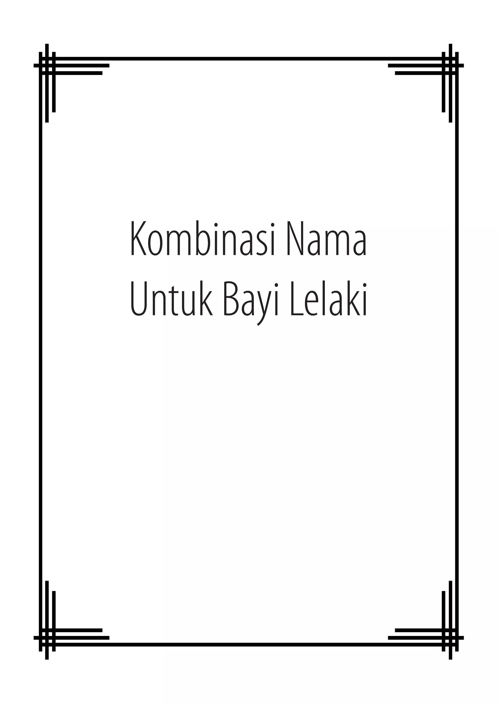 Kombinasi Nama-nama Untuk Bayi Lelaki Perempuan Copyright 2007-2008 by MuslimbabynamesComMy First Edition November 2007 This is not a FREE e-book. Mahmud Husain Zahidi. Kombinasi rangkaian nama anak laki-laki dan artinya yang indah bisa dijadikan referensi.